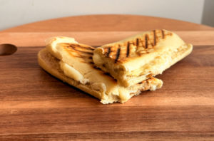 Panini, fromage de chèvre, mozzarella, yaourt grec, miel, noix