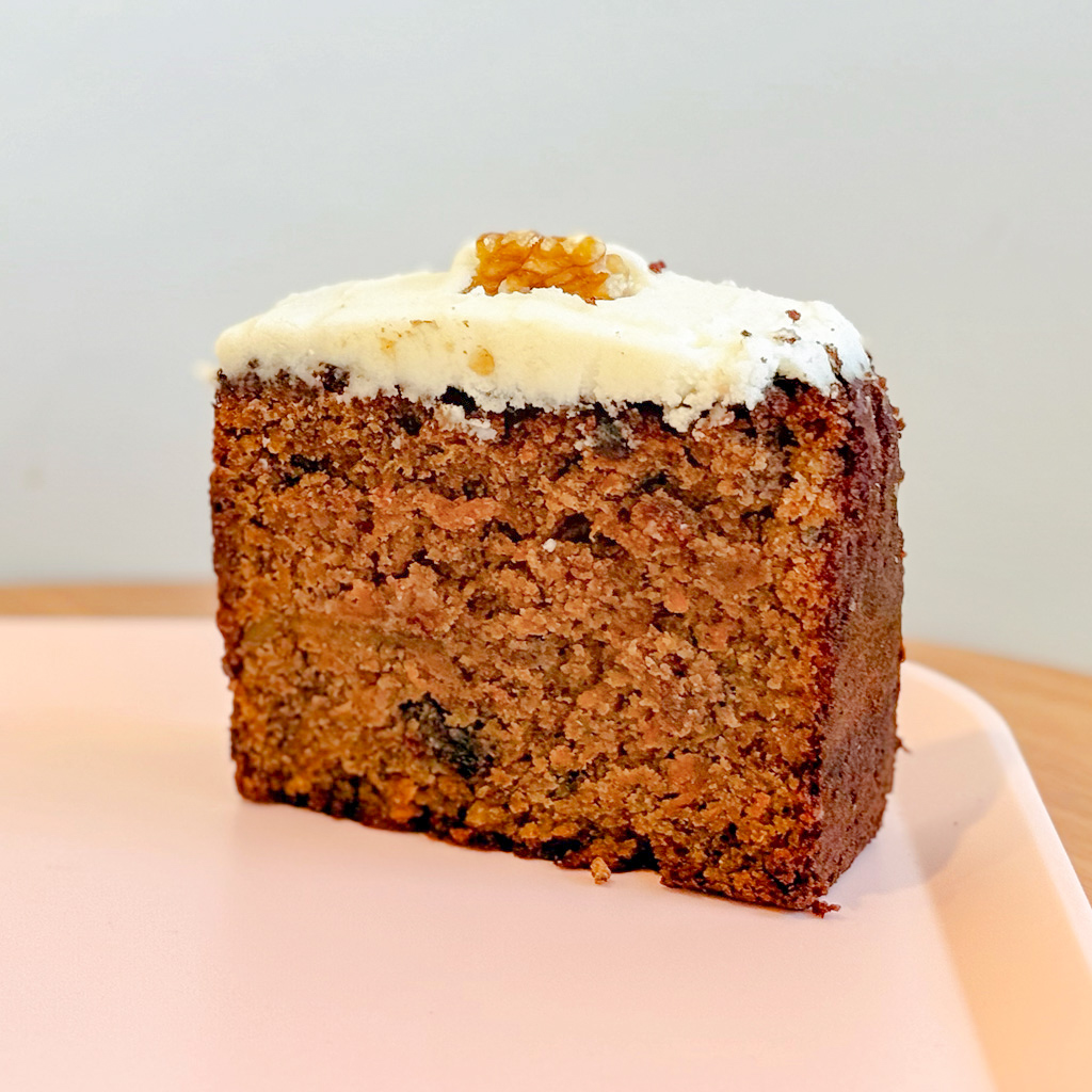 Carottes BIO, poudre de noisette, oeuf, cassonade, farine BIO, noix, gingembre confit, levure, zeste de citron, épices & cannelle