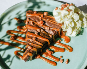 Café, lait, sirop de caramel, glace pilée, caramel au beurre salé « maison »